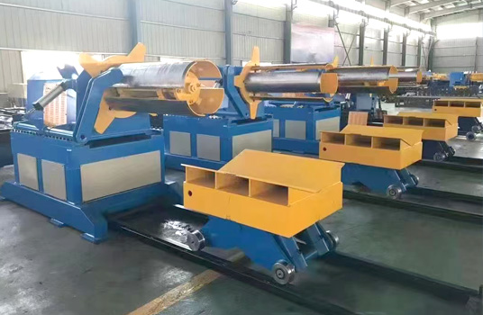 鋼板校平機是對金屬板材進行開卷、矯平、剪切、垛料的組合機機械加工設備。由上料小車、開卷機、引料機、粗矯機、精矯機、定尺送進裝置、縱剪機、橫剪機、碼垛裝置、電器控制、板料輸送架等輔助設備組合而成。